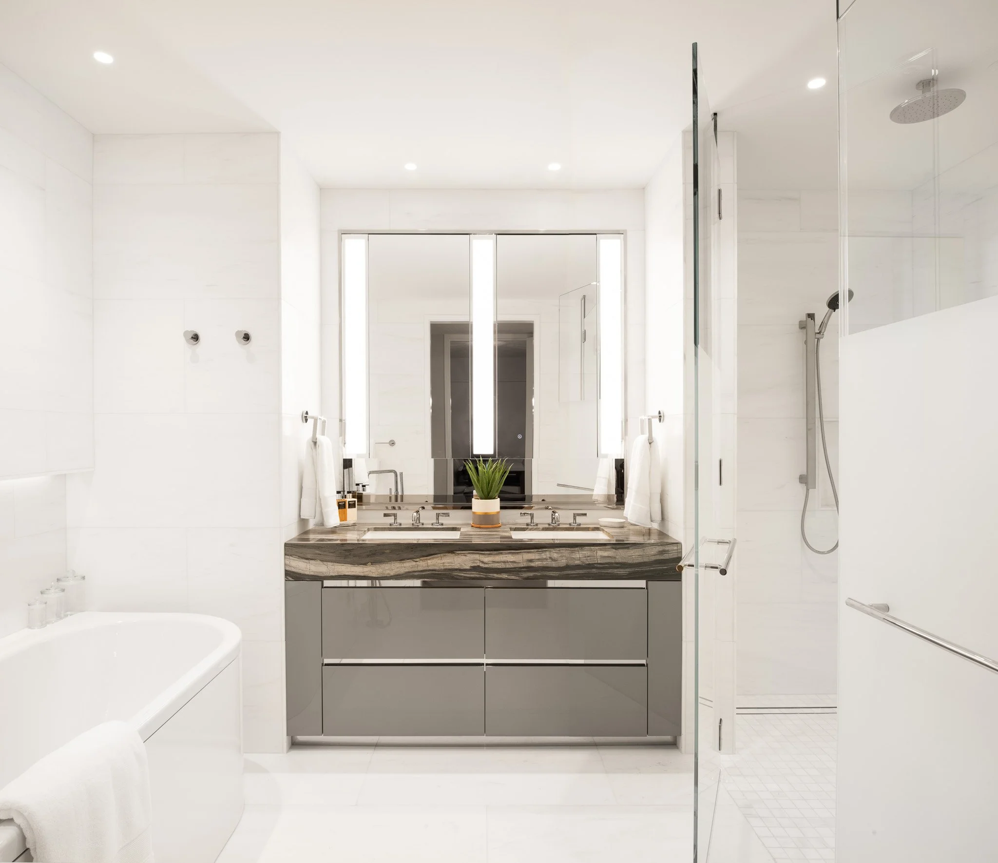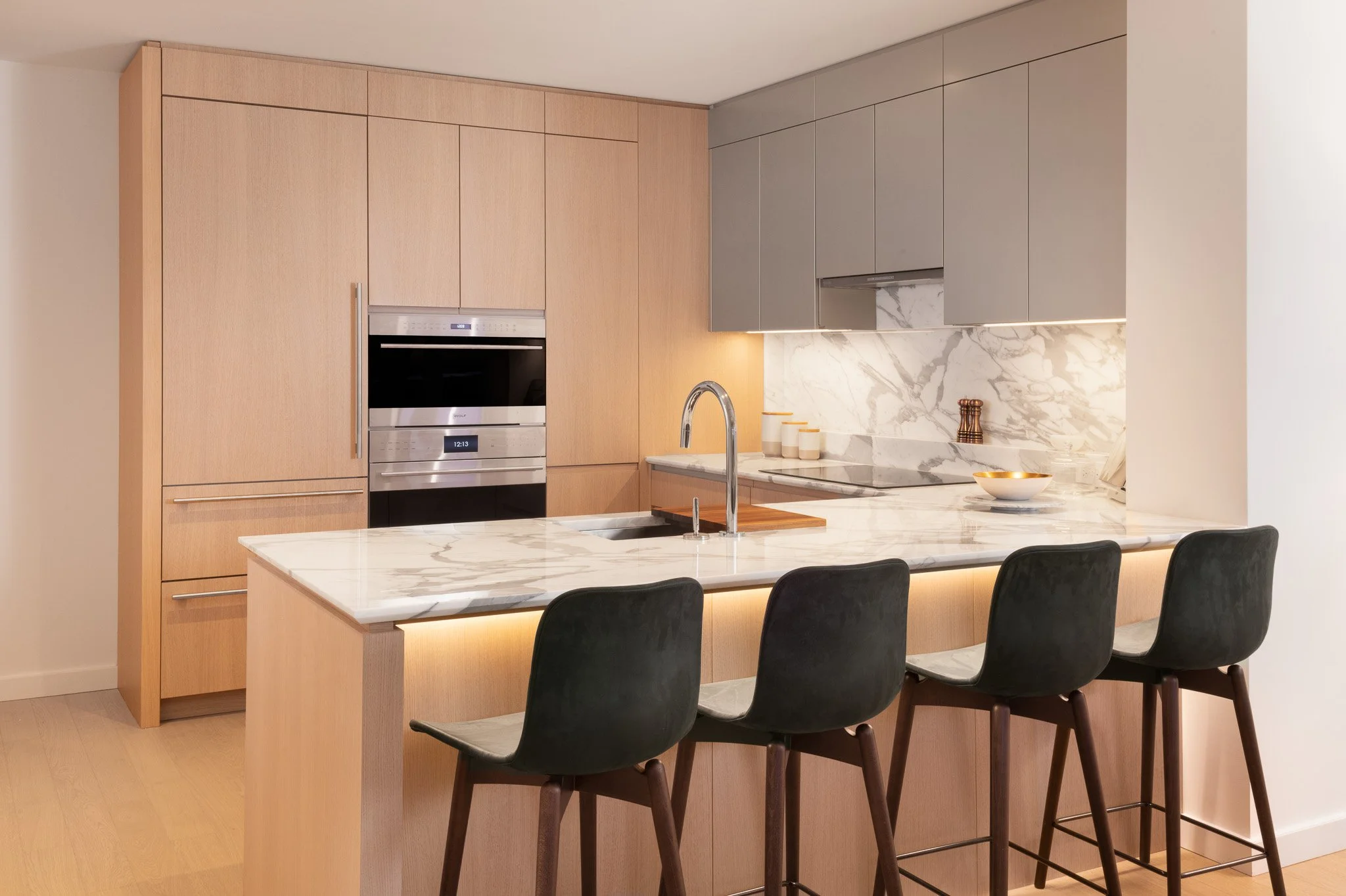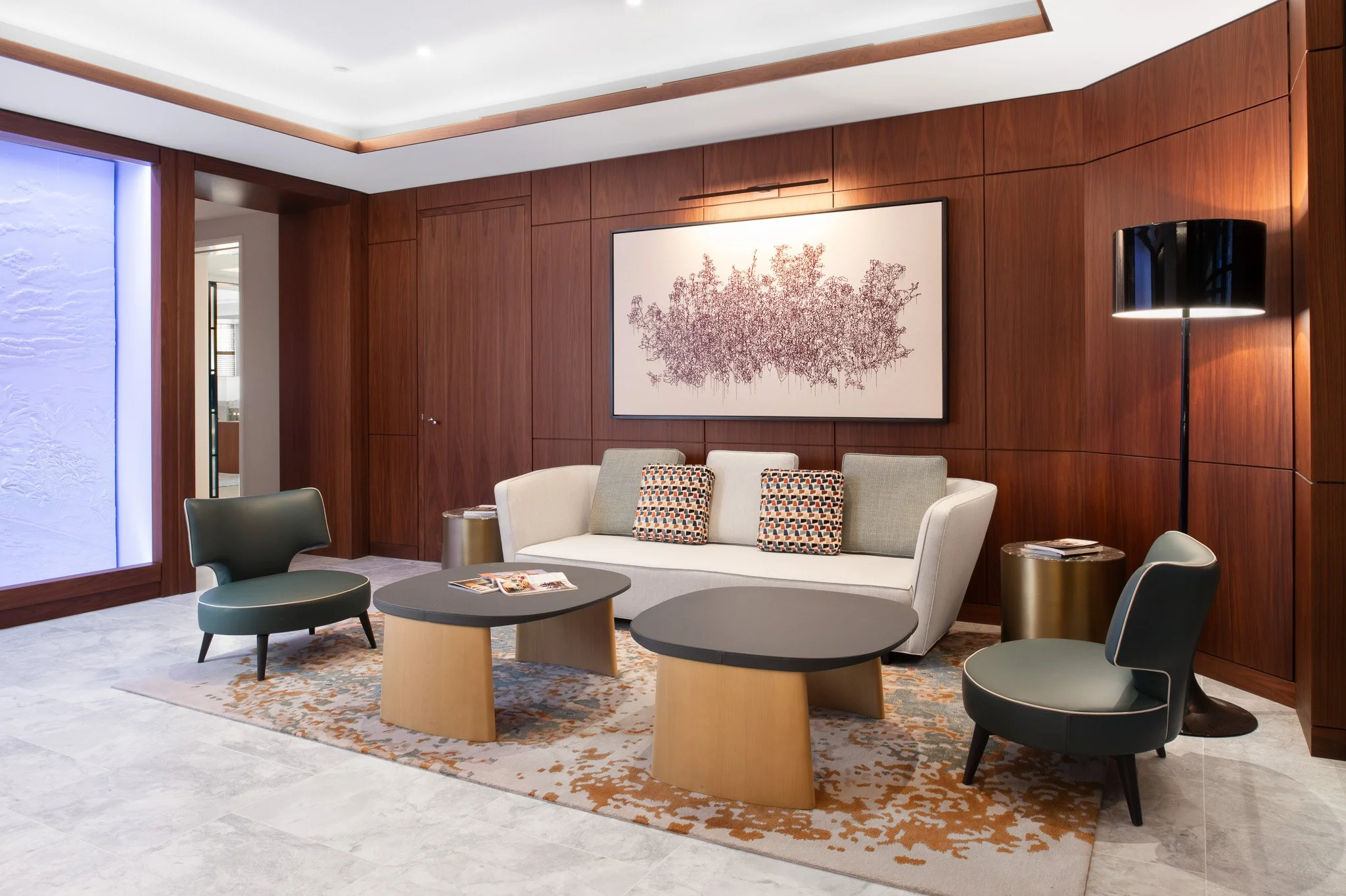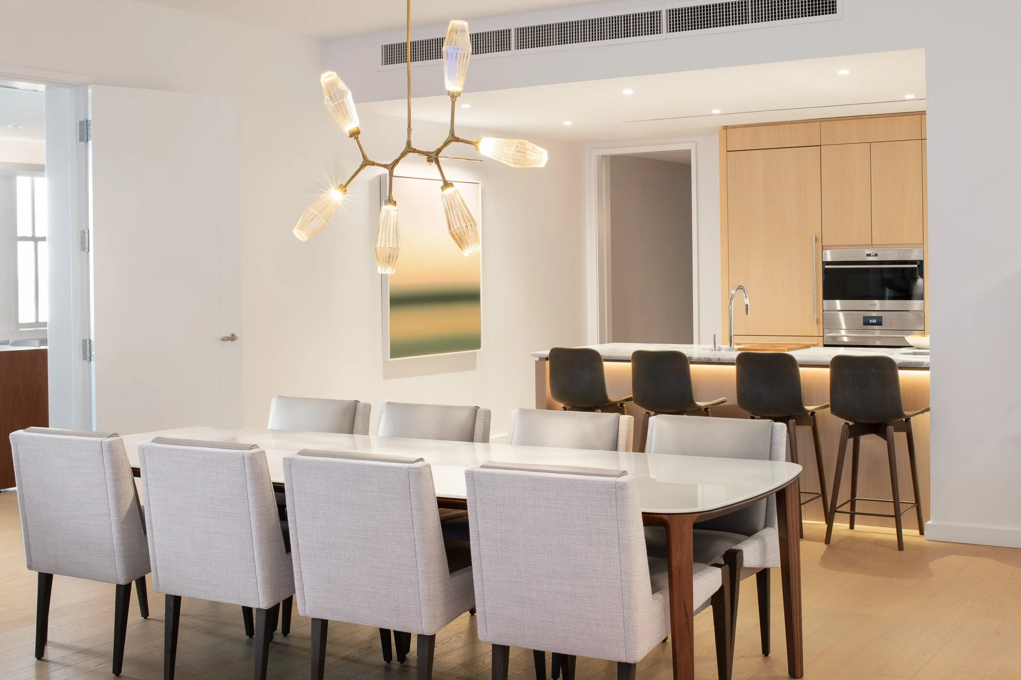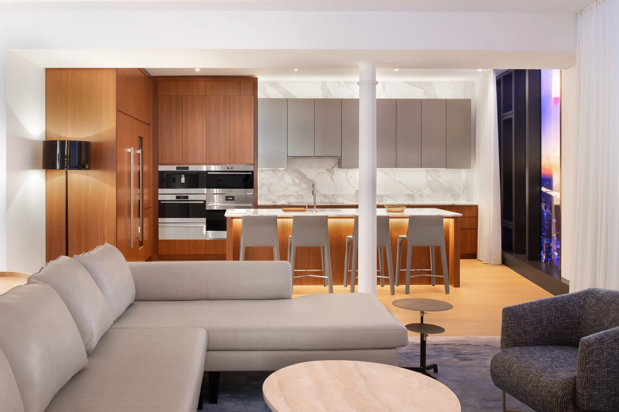 Corderman & Company completed a 4,500 SF immersive leasing gallery and sales showroom in partnership with Hines, designed to showcase the future vision of the South Station Tower. The space transforms an empty floor at 711 Atlantic Ave into a refined, fully realized residential environment, allowing prospective tenants and buyers to experience the luxury, craftsmanship, and architectural intent that will define the development’s residential offerings.