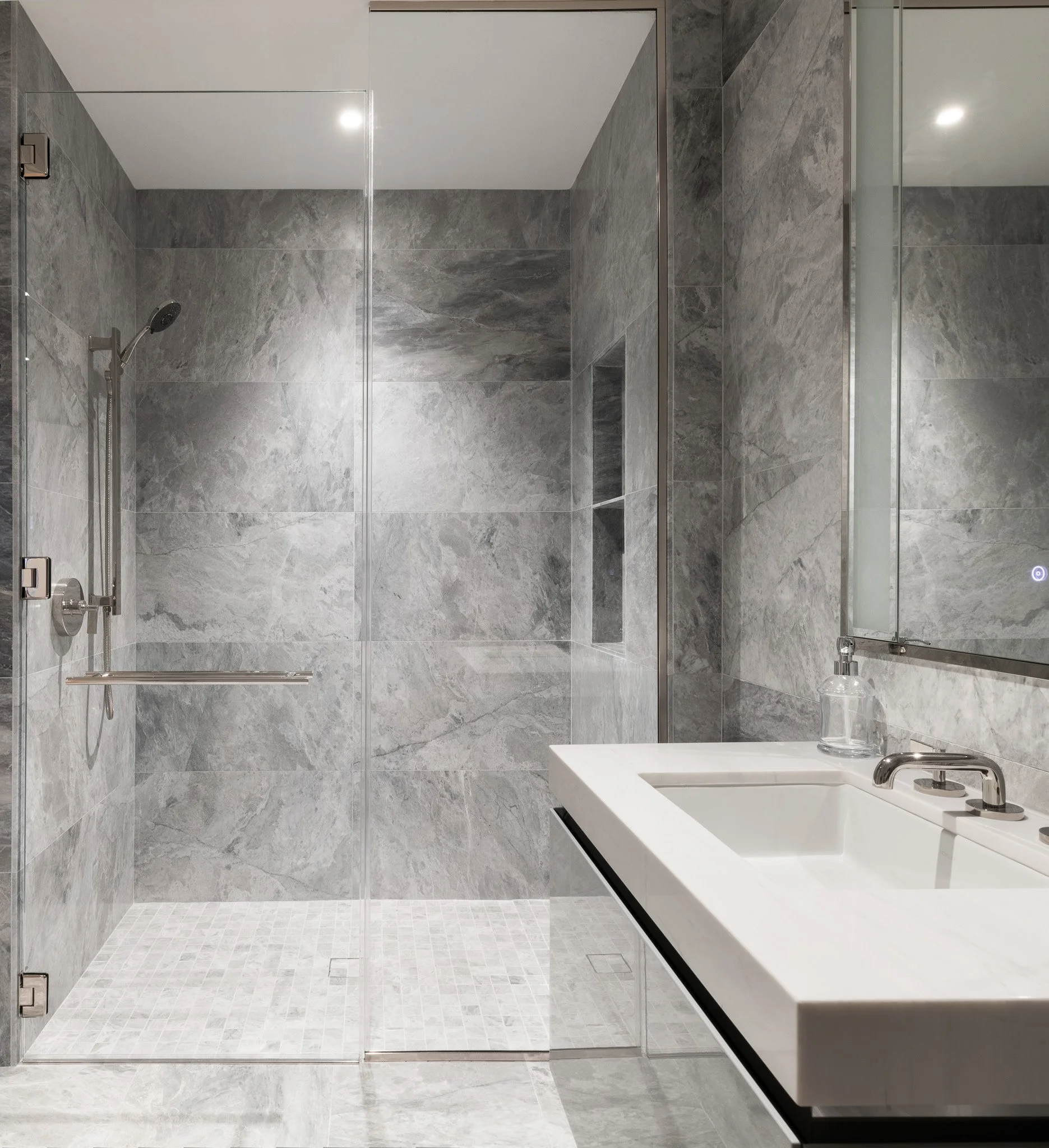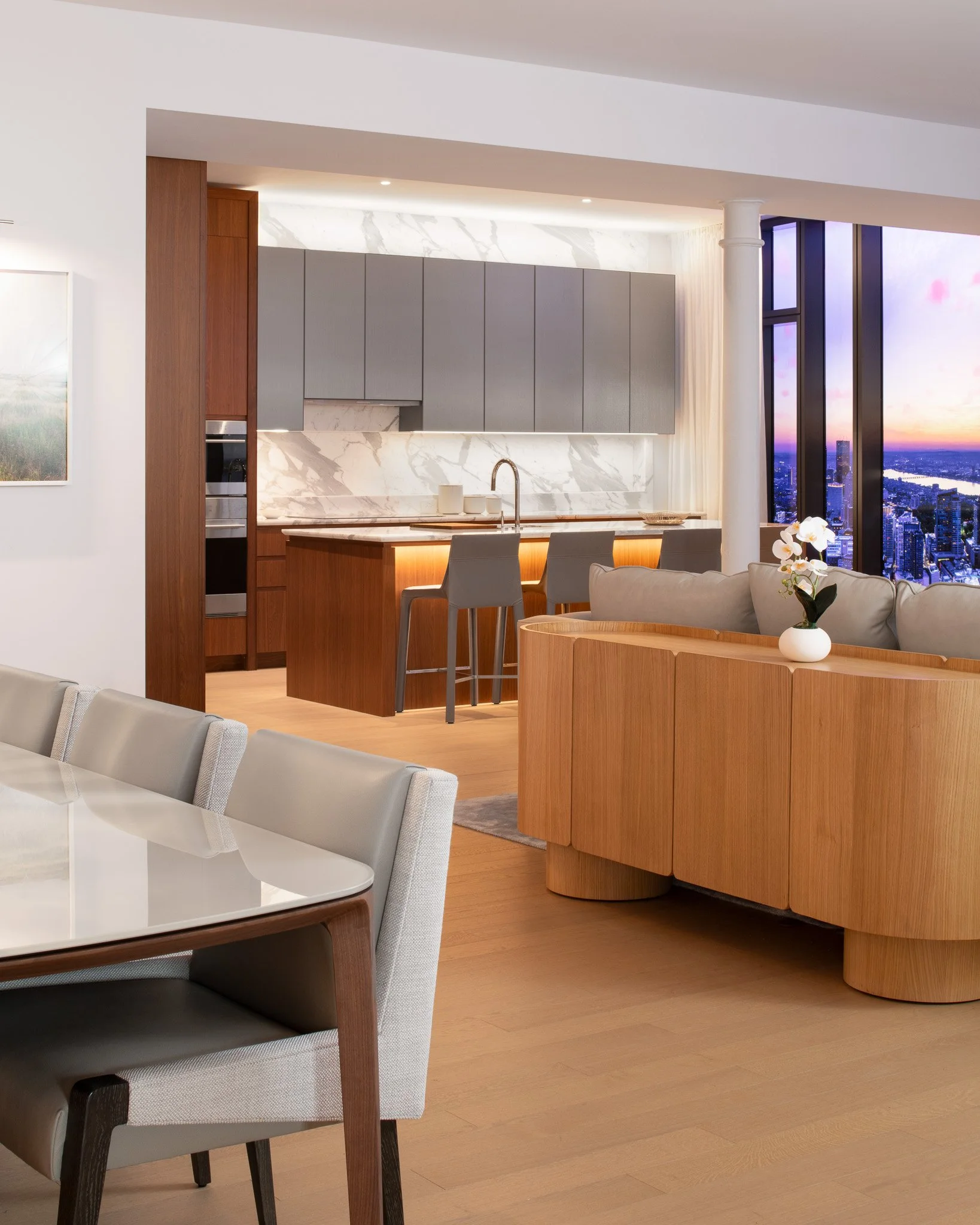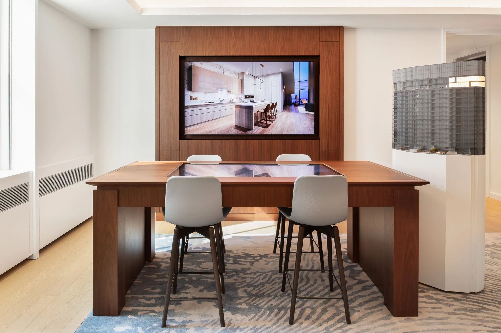 The gallery features full-scale residential vignettes, premium finishes, interactive touchscreen displays paired with 3D models, cinematic media elements, and custom architectural installations that simulate the tower’s panoramic city views. Delivered through close collaboration with the client, design teams, and trade partners, the project reflects Corderman’s expertise in executing high-end, design-forward interiors that support leasing, storytelling, and long-term asset positioning.
